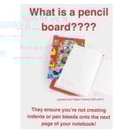 Material- plastic, so your pen will not bleed through to the next page or create indents!