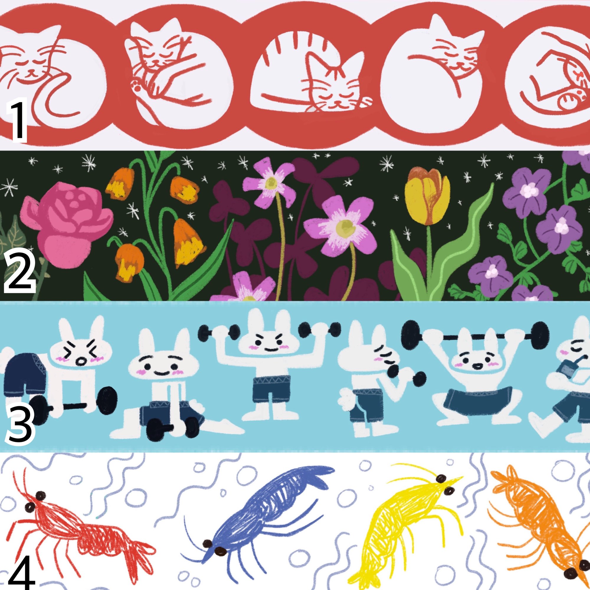 Four different washi tapes designed by Quinn Blackshere